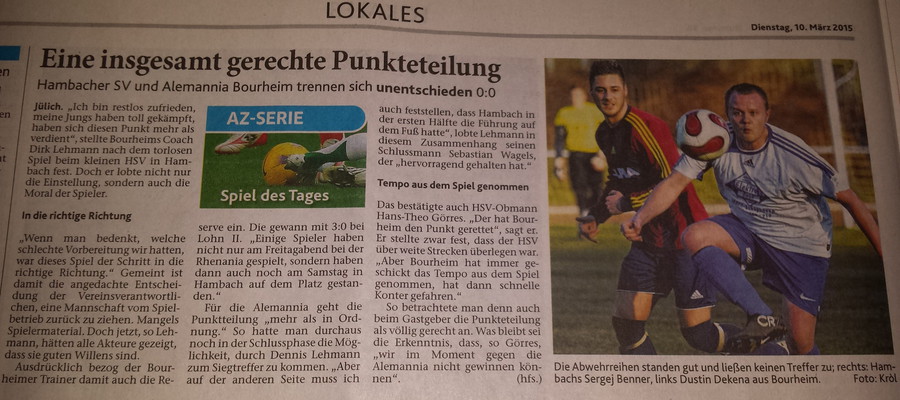 AZ-Serie: Spiel des Tages HSV - Alemannia Bourheim
