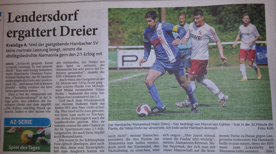 Az-Serie: Nachbericht Spiel des Tages HSV-Lendersdorf
